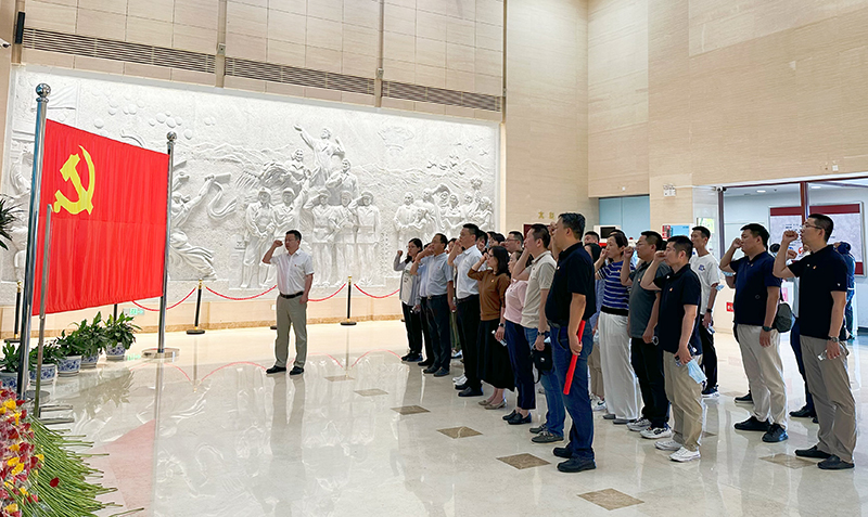 在紀(jì)念館內(nèi),公司黨委書(shū)記孫亞龍領(lǐng)誓,全體黨員在黨旗的見(jiàn)證下,重溫了對(duì)黨忠誠(chéng)的錚錚誓言。