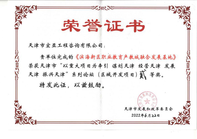 同時,天咨下屬監(jiān)理公司,宏亞公司也憑借著多年的專業(yè)經(jīng)驗獲得相關(guān)部門表彰。監(jiān)理公司服務(wù)的天津地鐵5號線工程土建施工第R6合同段獲得天津市建筑協(xié)會頒發(fā)的2021年度天津市建設(shè)工程“金獎海河杯”獎;宏亞公司的《濱海新區(qū)職業(yè)教育產(chǎn)教融合發(fā)展