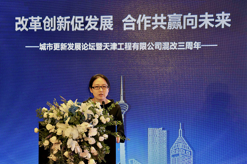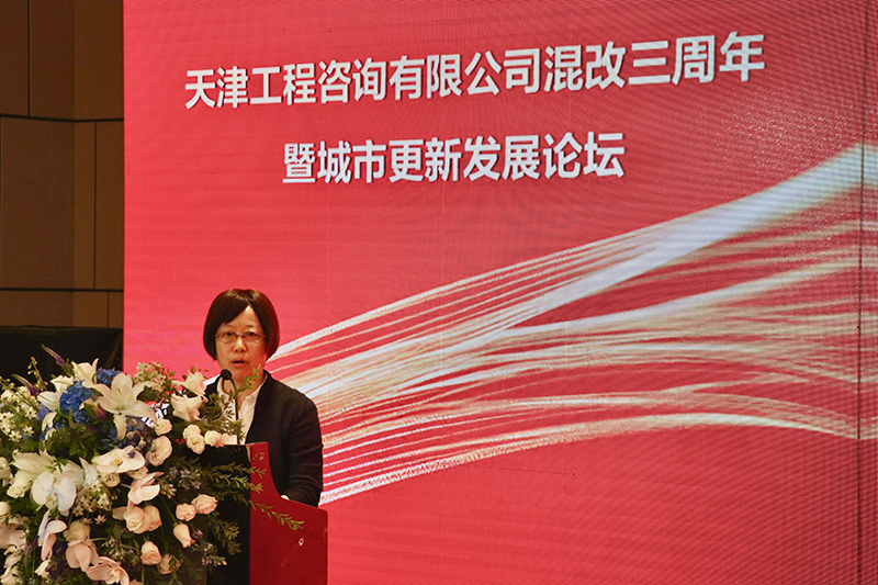 天津市國(guó)資委改革處副處長(zhǎng)袁薔致辭。代表市國(guó)資委向天津咨詢(xún)混改三周年表示祝賀,也向關(guān)心和支持天津國(guó)資國(guó)企改革發(fā)展的各界朋友表示感謝。天津咨詢(xún)混改三年引進(jìn)了先進(jìn)的管理理念和經(jīng)營(yíng)機(jī)制,實(shí)現(xiàn)了國(guó)有資產(chǎn)的保值增值,扎根天津、服務(wù)天津,加深了津滬兩地國(guó)資國(guó)企之間的合作與共贏。希望天津咨詢(xún)保持向好發(fā)展。不斷拓寬經(jīng)營(yíng)思路,健全經(jīng)營(yíng)機(jī)制,努力挖掘自身優(yōu)勢(shì),提高企業(yè)核心競(jìng)爭(zhēng)力,為混改后天津國(guó)資參股企業(yè)保持更好更快發(fā)展樹(shù)立典型。希望天津咨詢(xún)服務(wù)天津發(fā)展。主動(dòng)融入和服務(wù)“十項(xiàng)行動(dòng)”,持續(xù)推進(jìn)“三新”“三量”工作,抓住有利時(shí)機(jī),充分發(fā)揮在城市更新、資產(chǎn)盤(pán)活等方面的咨詢(xún)技術(shù)優(yōu)勢(shì),為天津的城市建設(shè)和經(jīng)濟(jì)發(fā)展“添秤”。希望天津咨詢(xún)發(fā)揮紐帶作用。繼續(xù)穩(wěn)步推進(jìn)改革,將上海國(guó)企的先進(jìn)理念引入天津,進(jìn)一步發(fā)揮好上海國(guó)資和天津國(guó)資之間的紐帶作用,為推動(dòng)雙方互利共贏做出積極貢獻(xiàn)。