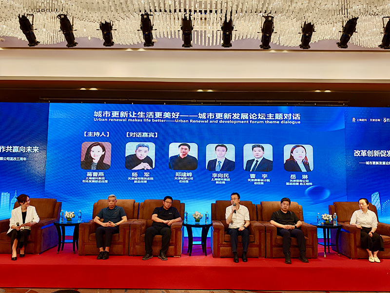 城市更新發(fā)展論壇圍繞城市更新政策引領(lǐng)、新技術(shù)應(yīng)用等領(lǐng)域,共同探討城市更新建設(shè)的發(fā)展新理念、新模式、新技術(shù)。上海建科集團(tuán)黨委委員、副總裁李向民、天津城市規(guī)劃總院城市更新分院院長(zhǎng)張娜、天津咨詢(xún)副總經(jīng)理、總工程師岳琳分別就《城市更新之上海建科研究與實(shí)踐》《實(shí)施城市更新行動(dòng),共劃城市發(fā)展轉(zhuǎn)型》《天津市城市更新產(chǎn)業(yè)策劃及投融資平衡研究》作專(zhuān)題演講。圍繞城市更新讓生活更美好主題,上海建科集團(tuán)副總裁李向民、天津城市規(guī)劃總院副總經(jīng)理?xiàng)钴?、天津房鑒設(shè)計(jì)院總經(jīng)理曹宇、天津城市更新發(fā)展公司總經(jīng)理鄭建峰、天津咨詢(xún)副總經(jīng)理、總工程師岳琳進(jìn)行“主題對(duì)話”。上海建科集團(tuán)市場(chǎng)發(fā)展部總經(jīng)理葛曹燕主持城市更新發(fā)展論壇。