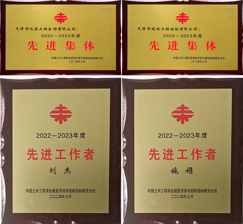 日前,在中國(guó)土木工程學(xué)會(huì)建筑市場(chǎng)與招標(biāo)投標(biāo)研究分會(huì)舉辦的2022-2023年度評(píng)選中,天津咨詢所屬泛亞咨詢、建設(shè)招標(biāo)兩家子公司分別榮獲“先進(jìn)集體”榮譽(yù)稱號(hào),泛亞咨詢劉杰、建設(shè)招標(biāo)施娟分別榮獲“先進(jìn)工作者”榮譽(yù)稱號(hào)。