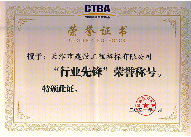 招投標協(xié)會“行業(yè)先鋒”榮譽