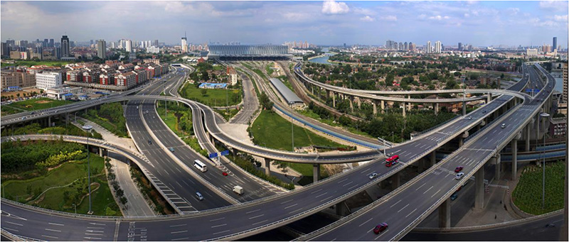 天津西站交通樞紐西縱聯(lián)絡(luò)線立交橋 坐落于紅橋區(qū),總面積約25.6萬平米,為大型過鐵路互通式立交,橋梁面積約6.3萬平米,為我公司承攬的最長的高標(biāo)準(zhǔn)橋梁工程。